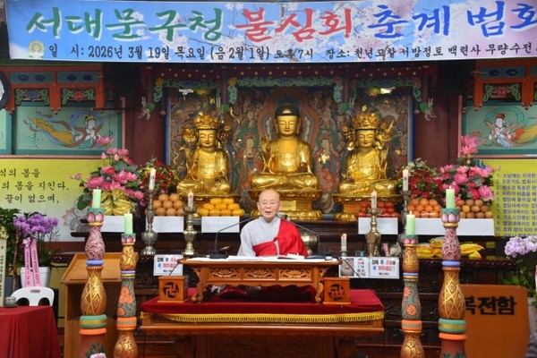 서대문구청 불심회(회장 박용기) 춘계법회가 3월 19일 오후 7시 한국불교태고종 백련사 무량수전에서 수계의식으로 봉행됐다.