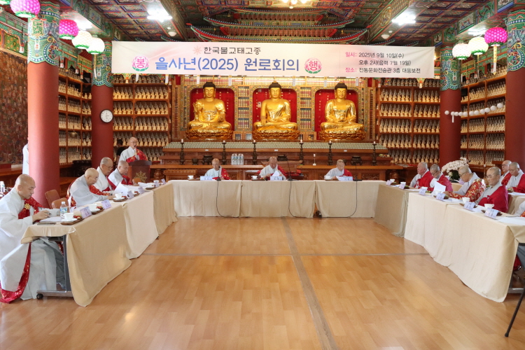 한국불교태고종 원로회의(의장 호명 스님)가 9월 10일 오후 2시 한국불교전통문화전승관 3층 불이성 법륜사 대웅보전에서 개최돼 종단현안에 대한 보고를 받고 적극 동참 및 지지를 결의했다.