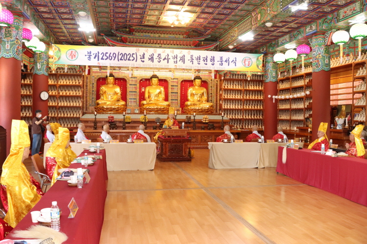 불기 2569(2025)년 한국불교태고종 대종사 법계 특별전형 품서식 및 연찬회가 운경 종정 예하를 모신 가운데 9월 23일 오전 11시 법륜사 대웅보전에서 봉행됐다.