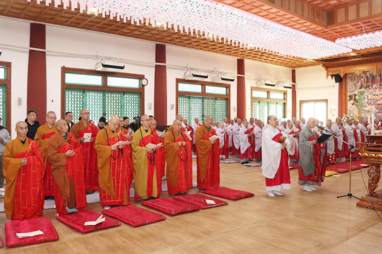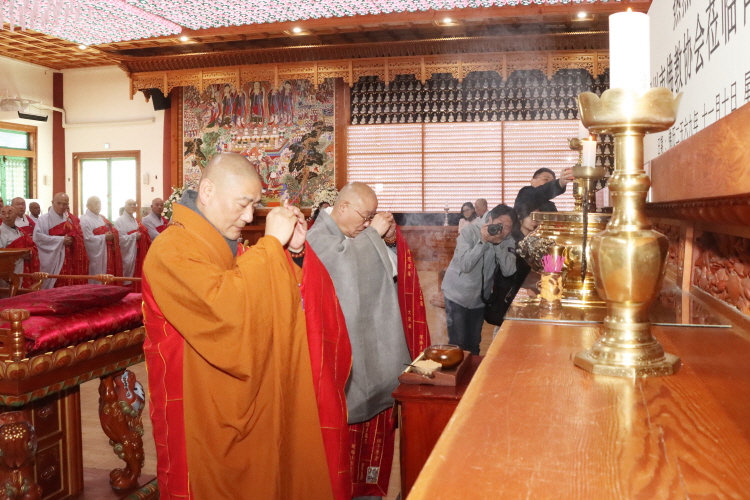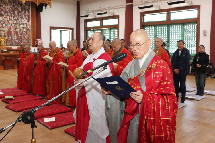 한국불교태고종 총무원장 상진 스님은 11월 10일 오후 2시 양주 청련사에서 중국 절강성 후저우시 불교협회(회장 계륭 스님) 대표단의 예방을 받고 환담을 나눴다. 후저우시 불교협회 대표단은 11월 12일 서울 국회의사당 국회박물관에서 태고종이 주최하는 ‘제8회 한중불교문화교류 학술세미나’ 참석을 위해 방문했다. 이번 방문에서 후저우시 불교협회 대표단은 회장 계륭 스님을 비롯해 30여 명이 동행한 가운데 청련사 대적광전에서 양국 합동 예불을 봉행했다.