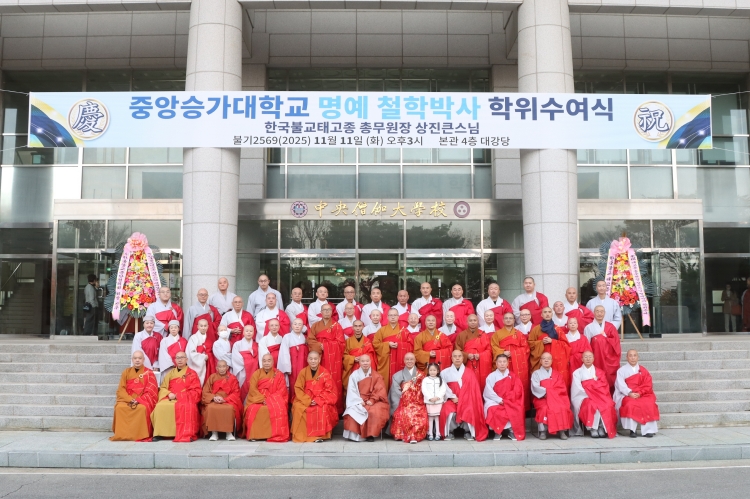 11월 11일 승가교육 진흥과 불교의례 전통 계승에 힘써 온 공로에 중앙승가대(총장 월우 스님)는 본관 4층 대강당에서 ‘태고종 총무원장 상진 스님 명예 철학박사 학위 수여식’을 개최했다.