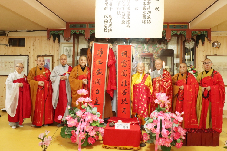 한국불교태고종 운경 종정 예하는 11월 11일 오전 11시 백련사 대중방에서 전날 입국한 중국 하저우시 불교협회 대표단의 예방을 받고 차담을 나눴다. 총무원장 상진 스님과 중국 하저우시 불교협회 회장 계륭 스님이 함께 한 대표단은 백련사 무량수전에서 먼저 예참을 올린 뒤 대중방에서 운경 종정 예하를 친견했다.