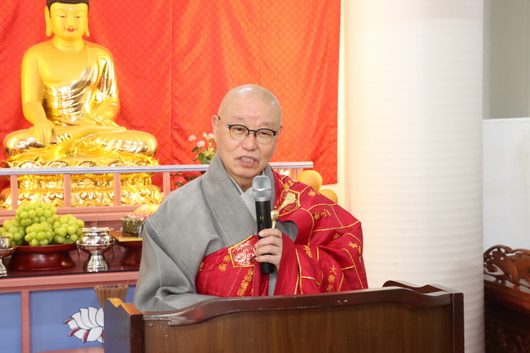 총무원장 상진 스님은 격려사에서 “병오년 새해를 맞아 충북교구종무원의 발전과 종도 여러분의 사찰불사와 수행정진에 부처님의 가피가 두루하시길 축원드린다”면서 “그동안 충북교구는 교구 내 크고 작은 불사를 치르면서도 종단발전에 헌신적인 노력을 아끼지 않았다”고 밝혔다. 총무원장 상진 스님은 이어 “지난해 광화문영산재와 국제수계법회로 종단의 위상을 올리는 전환점을 마련했다”며 새해에도 종단 발전에 적극적인 협력과 지지를 당부했다.