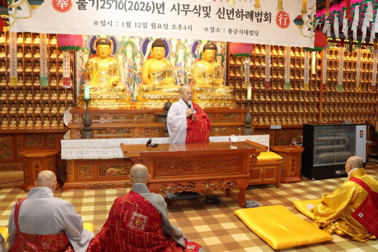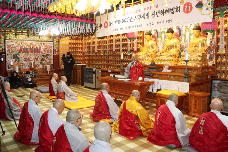 1월 12일 인천교구종무원(종무원장 능해 스님, 태고종 포교원장)은 인천 용궁사 대법당에서 종무원 시무식 및 인천교구 신년하례법회를 봉행했다. 총무원장 상진 스님은 격려사에서 “한국불교의 뿌리는 전통의식과 염불로 맥을 잇고 있는 태고종에 있다”면서 “자부심을 갖고 매사 곳곳에서 주인공의 자세로 전법에 임하라. 좋은 성과를 거둘 수 있을 것이다”고 당부했다.