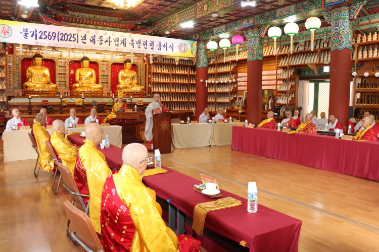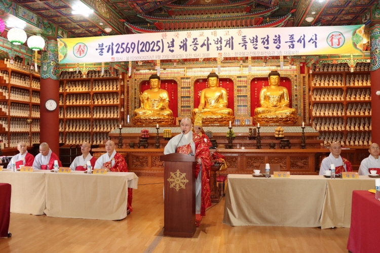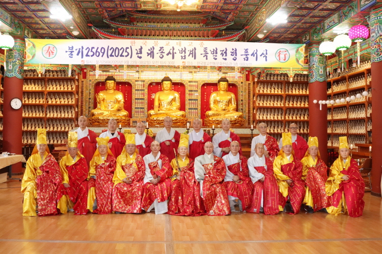 불기 2569(2025)년 한국불교태고종 대종사 법계 특별전형 품서식 및 연찬회가 운경 종정 예하를 모신 가운데 9월 23일 오전 11시 법륜사 대웅보전에서 봉행됐다.