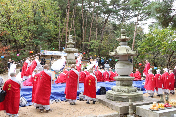 한국불교태고종 종조 태고보우 원증 국사 탄신 제723주년 다례법회가 10월 23일(음력 9. 21.) 오전 10시 북한산 태고사 대웅보전과 부도탑 앞에서 봉행됐다. 이날 다례법회는 운경 종정 예하가 특별히 참석한 가운데 총무원장 상진 스님을 비롯해 승정 보경 스님, 행정부원장 능해 스님 등 총무원 소임자 전원과 교육원장 재홍 스님, 법규위원장 정운 스님, 종정예경실장 동허 스님, 한국불교신문사 사장 청호 스님, 전국비구니회 회장 현중 스님 등 기관장들과 제49기 합동득도 수계자들의 동참 속에 진행됐다.