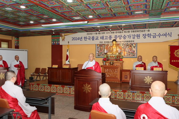 한국불교태고종 중앙승가강원 장학금 수여식이 11월 6일 한국불교전통문화전승관 1층 대회의실에서 실시됐다.